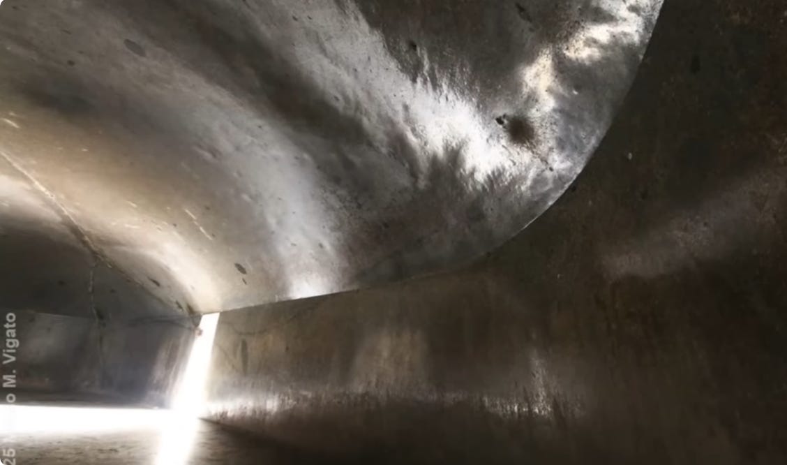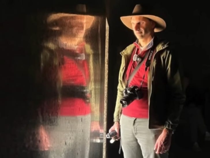 17’35”) Now a similar technique may have been used to create these spectacular Barabar caves, ... a set of seven caves that were carved ... from solid Granite. ... These are from India as well. ... I’ll show you a photo here of Marco inside. It’s incredibly mirrorlike as well. So it looks like they were using some kind of a similar technique. And we also see vitrification like this all over in Peru. There’s an obscure cave just right above Cusco.